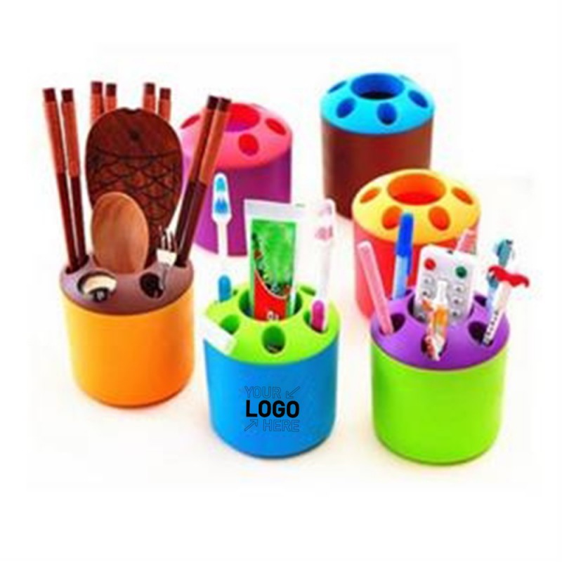 Multi functional toothbrush holder pen holder is not only simple and stylish, but also lightweight and economic. It is magic helper for your desktop. It can be used as toothbrush holder and pen holder. Also, you can used it as storage bucket. It has enough printing area and your logo is welcome. Using it as a give away promo product, for events, tradeshow, exhibition, etc. Various colors are available